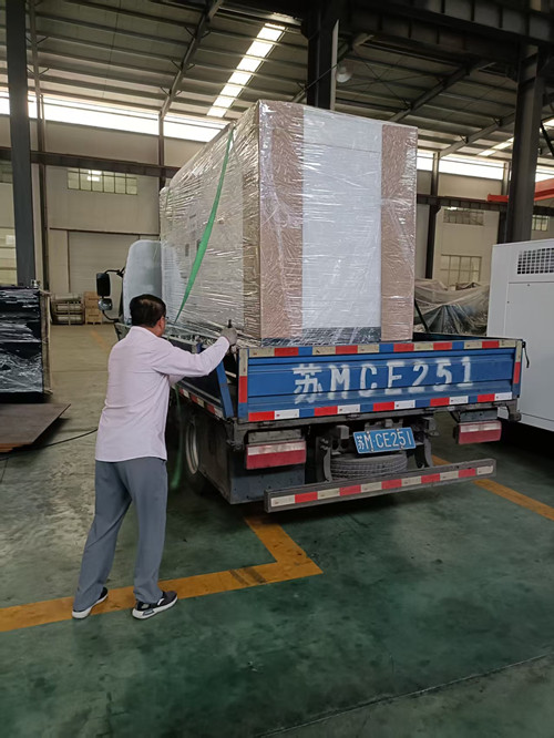 某國外客戶和河北客戶均選擇采購我單位靜音式柴油發電機組,車間技術工人已安裝調試完畢,裝車準備發貨,如圖: