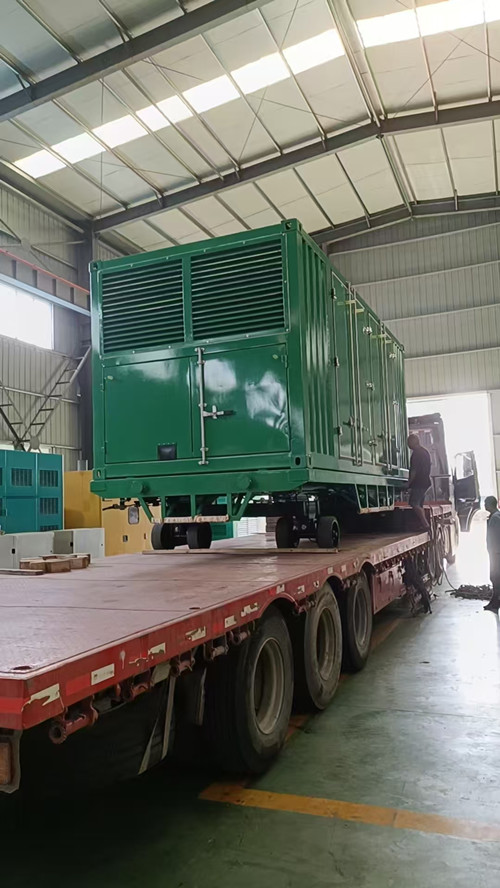 某公司在我單位訂購了一臺集裝箱式柴油發電機組,車間技術人員已安裝調試完畢,裝車準備發貨,見下圖:
